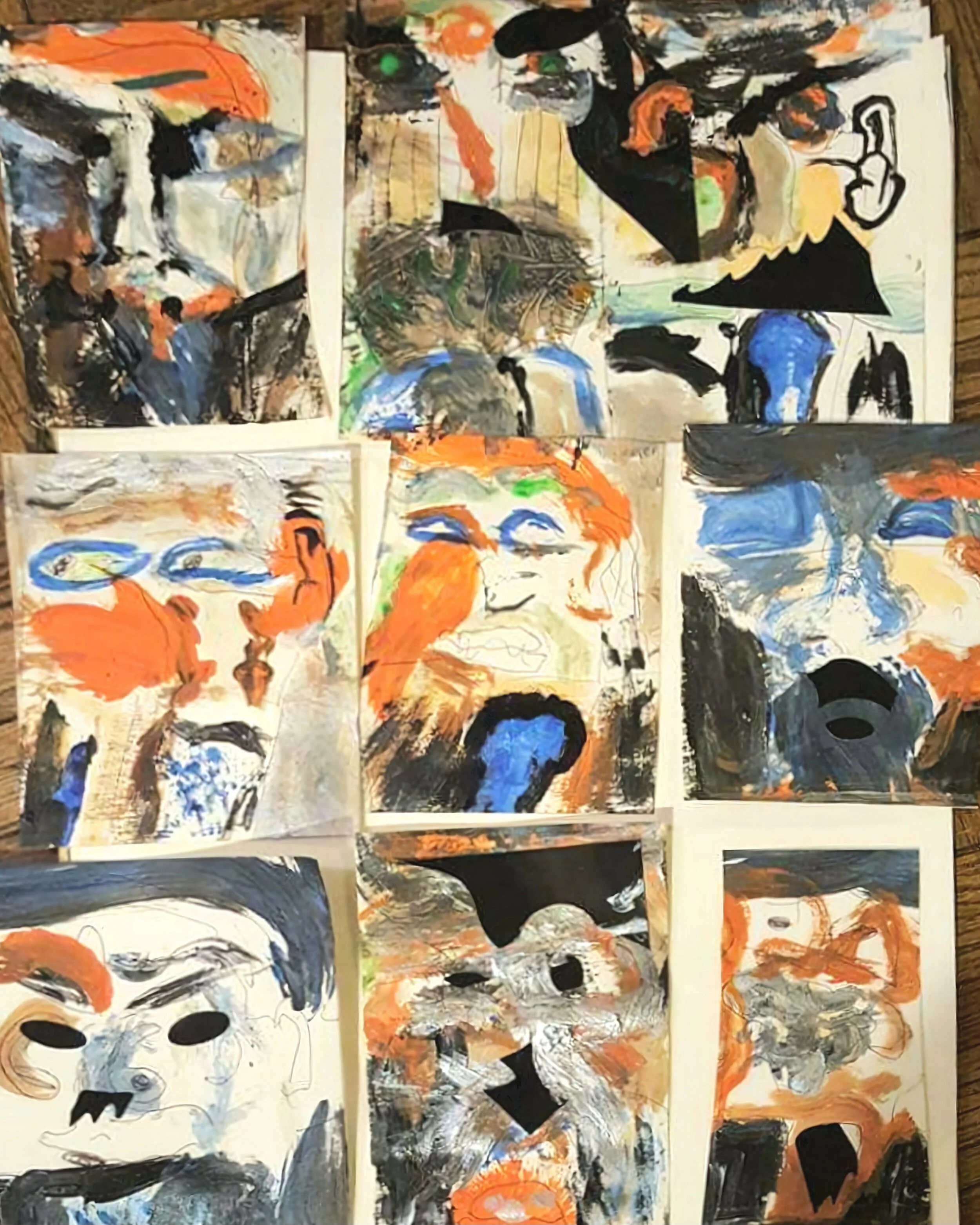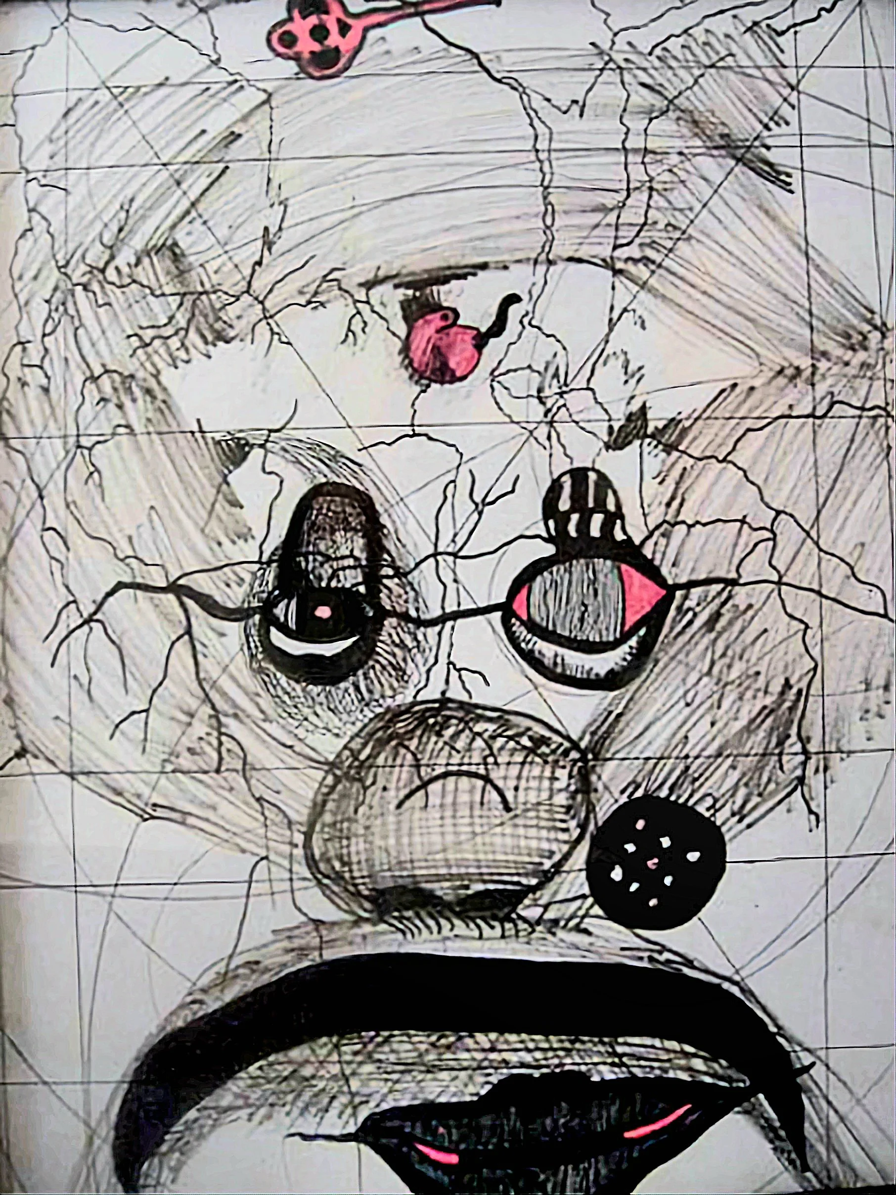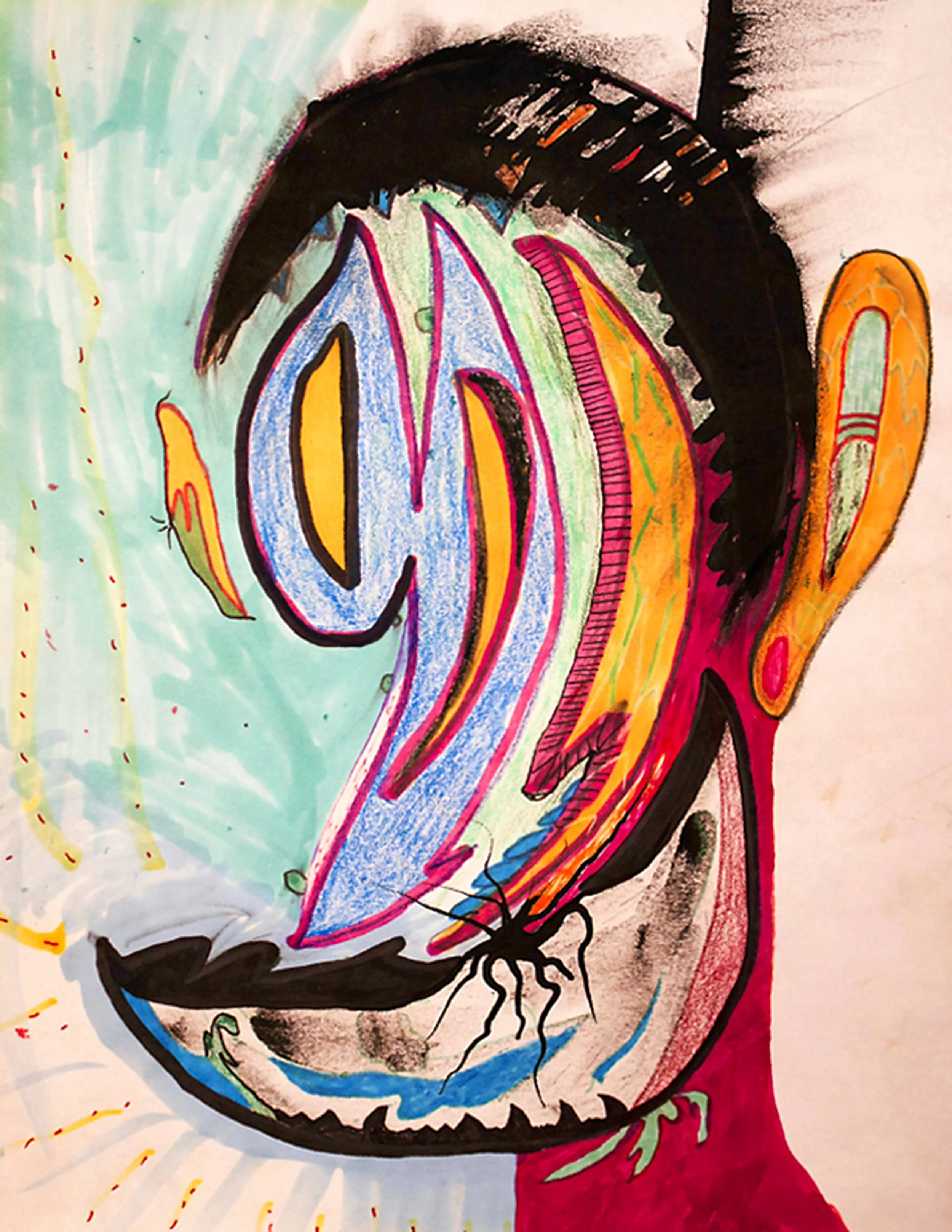 Trago Masks 6-14 / Collage Mixed Media Pastel, Acrylic, Pens & Markers / I think this was thrown out around 2018
